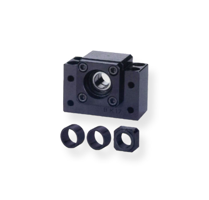 支撐座是連接絲桿和電機的軸承固定座,是對標準滾珠螺桿的軸端成品,預備了標準化的支撐單元EK、EF型,對一般滾珠螺桿預備了標準的支撐單元BK、BF型。